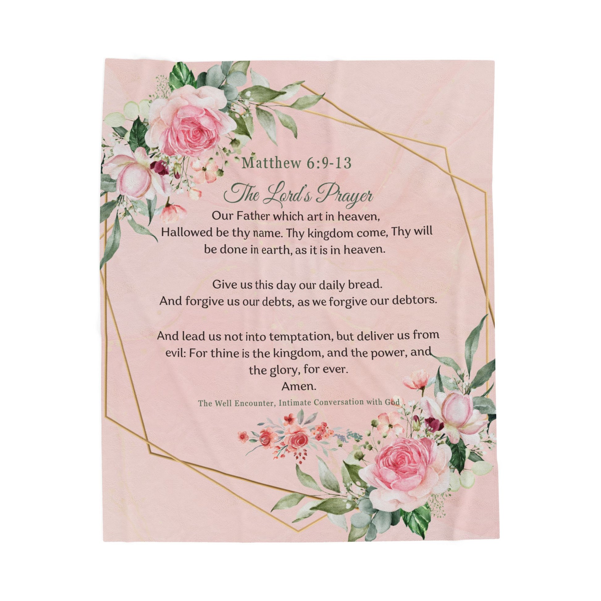 Matthew 6:9-13 Velveteen Plush Blanket, Cozy Prayer Blanket, Floral Throw, Inspirational Home Decor, Religious Gift, Comfort Blanket
