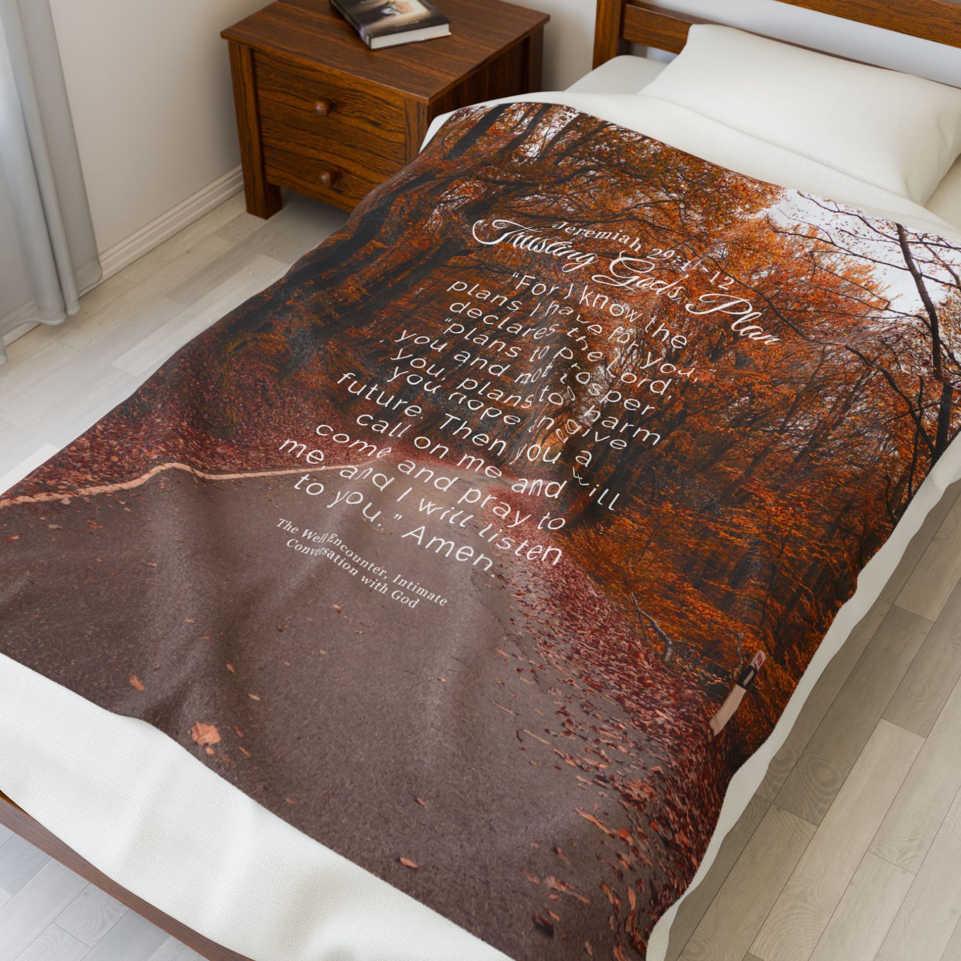 Velveteen Plush Blanket - Jeremiah 29:11-12 Bible Verse Inspirational Home Decor